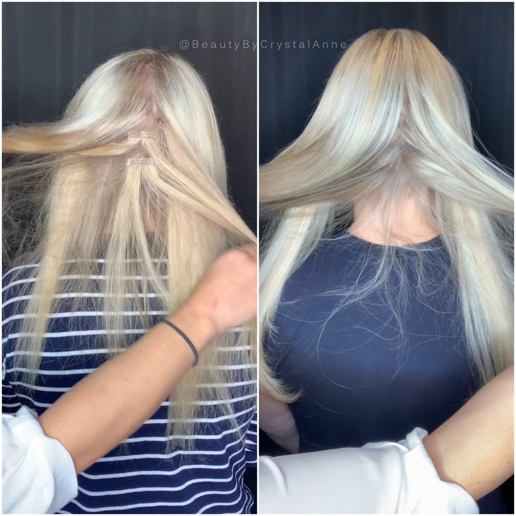 Web Hand-tied hair extensions have a type of weft hand sewn to give you the thinnest track of hair for the lightest most invisible hair extension application. I found a stylist that specialized in extensions and specifically blonde hair.